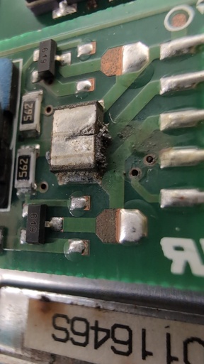 it seems like this one has some red components that look like film capacitors in place of that blown smd thing